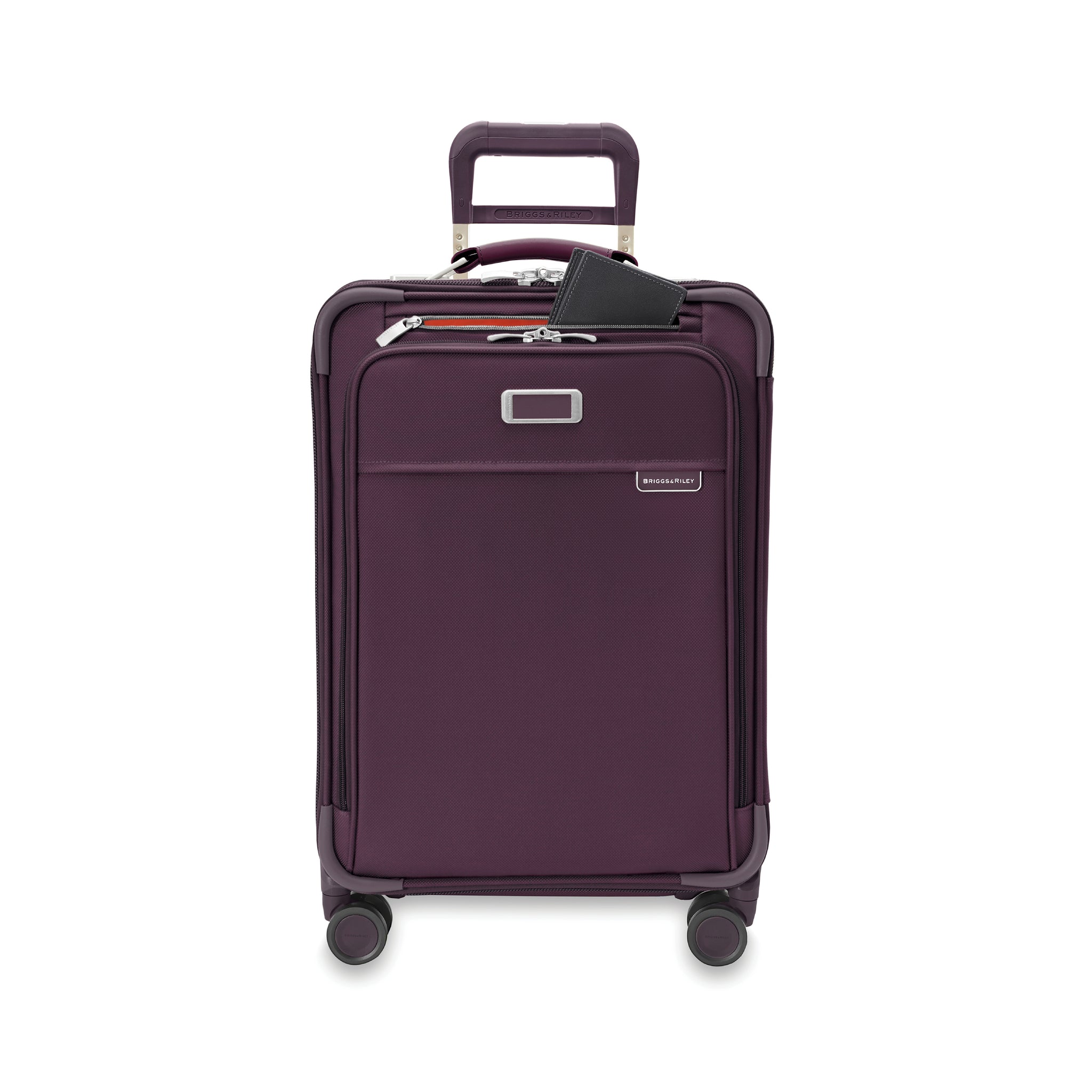 An elegant carry-on that rolls or spins on 4 re-engineered double swivel spinner wheels for effortless 360° navigation. This rolling carry-on features one touch CX technology, expanding the bag by up to 25% when more packing space is needed, then compressing back down to original size for overhead storage. The durable ballistic nylon outer fabric withstands the toughest travel conditions. Fits the overhead compartment of most U.S. domestic airlines. 22 in. x 14 in. x 9 in. carry on 9.3 lbs